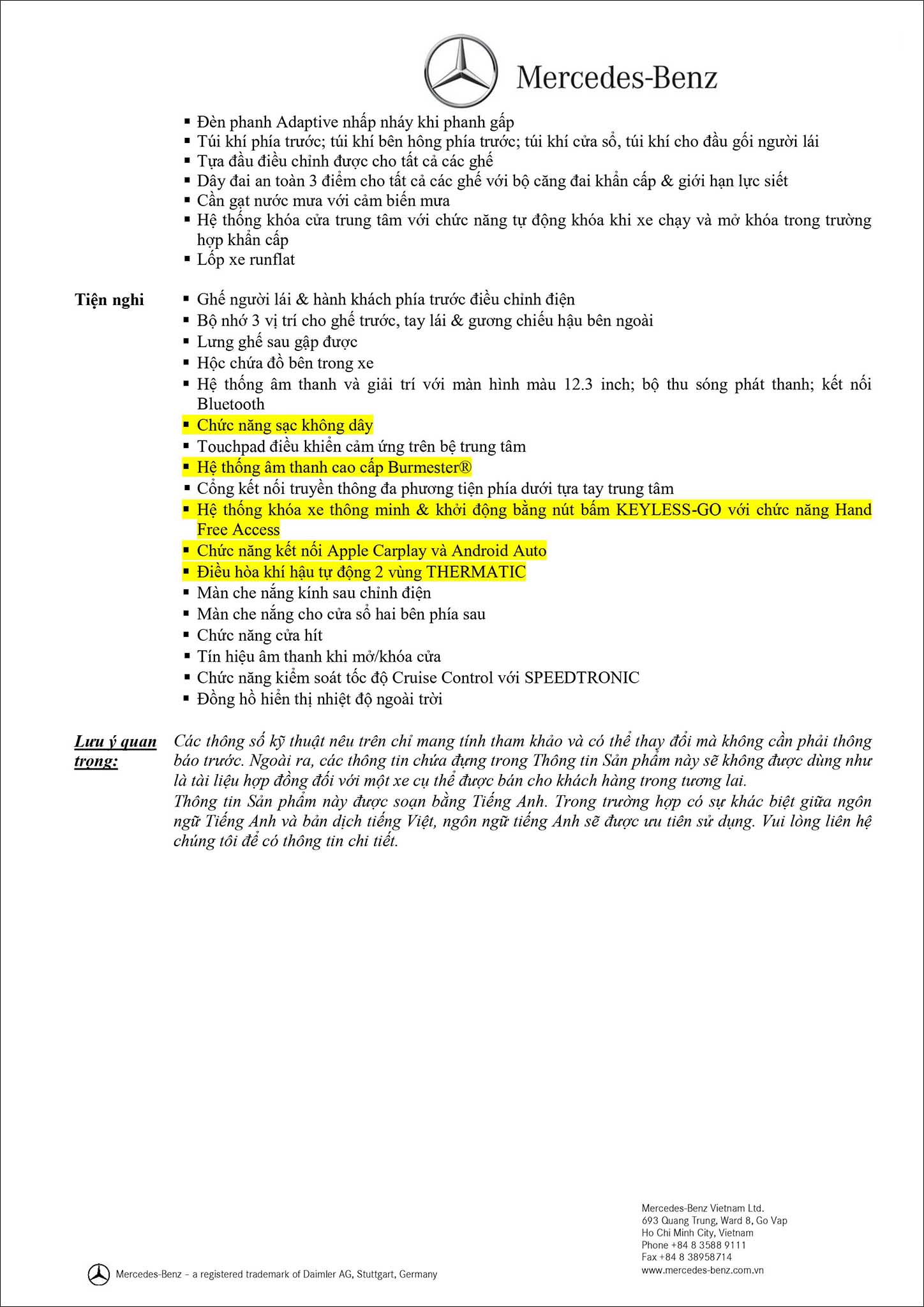 - Bảng thông số kỹ thuật Mercedes E200 Exclusive 2020 mới ra mắt