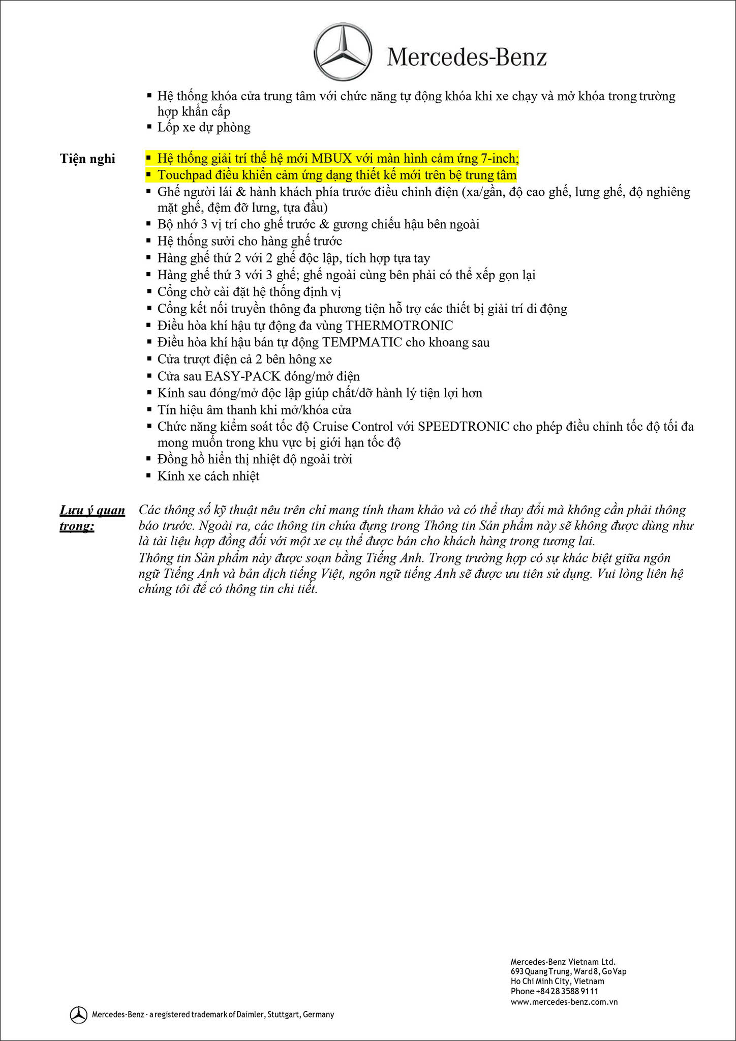 Quý khách hàng có thể tham khảo thêm Bảng thông số kỹ thuật Mercedes V250 AMG 2019 hoặc cần thêm thông tin có thể liên hệ với chúng tôi qua số Hotline để được nhân viên tư vấn ngay.
