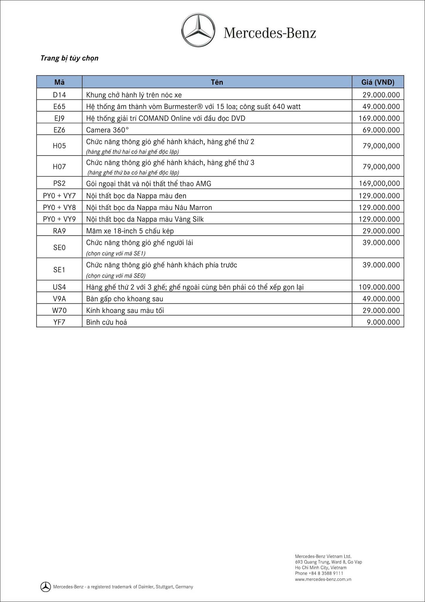 14/01/2019 2663Cập nhật Bảng thông số kỹ thuật Mercedes V250 Avantgarde 2019 vừa được Mercedes-Benz Việt Nam điều chỉnh giá bán bắt đầu từ ngày 14/01/2019.