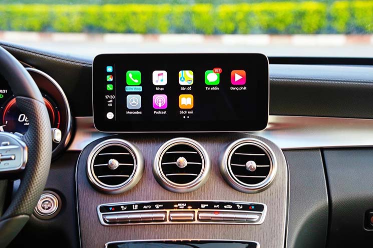 Ngoài ra, mẫu sedan Mercedes-Benz C300 AMG 2020 hạng sang này sẽ khiến người dùng phải đi từ ngạc nhiên này đến bất ngờ khác, khi được trang bị hàng loạt tiện nghi cao cấp phục vụ nhu cầu giải trí như màn hình cảm ứng có kích thước lên đến 10,25 inch, bộ thu sóng phát thanh chất lượng cao, hỗ trợ kết nối Bluetooth, Apple Carplay hoặc Android Auto, dàn âm thanh vòm Burmester 10 loa có công suất lên đến 590 watt.